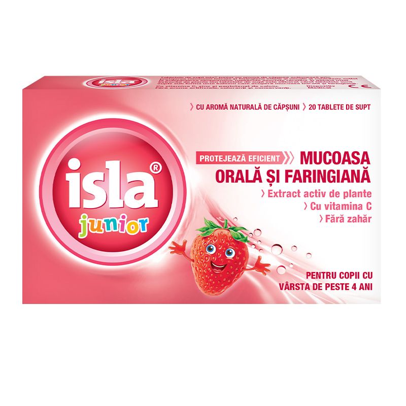 ISLA JUNIOR CU AROMĂ DE CĂPȘUNI, 20 TABLETE DE SUPT
